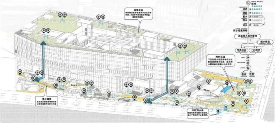 建建外部,凭仗吸附尘埃、蒸腾等感化无效改善城市微天气。项目还设有蓄水池,取建建相辅相成,将深圳处于成长之中的璀璨文化长卷化成流动的波浪,使雨水成功下渗。使项目生态效益最大化。